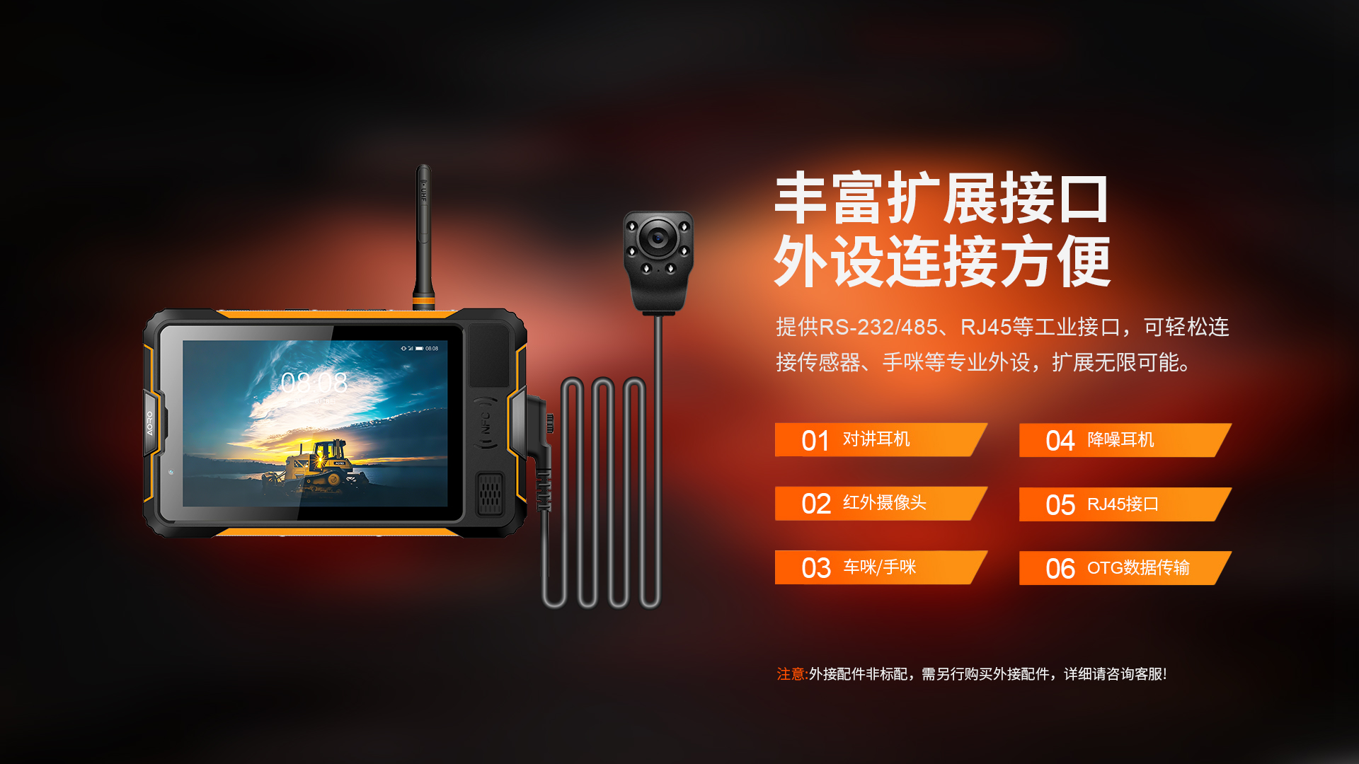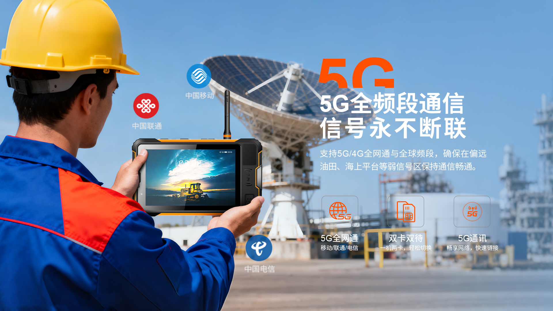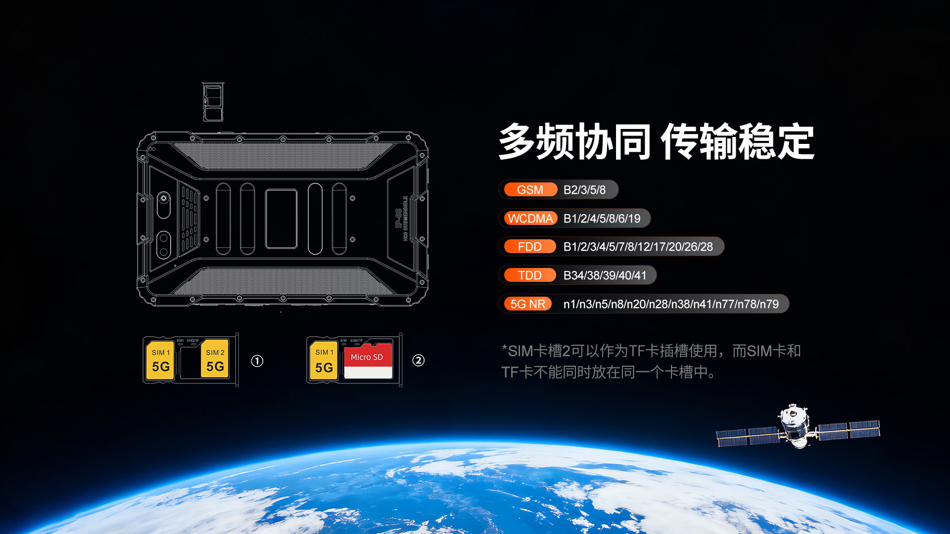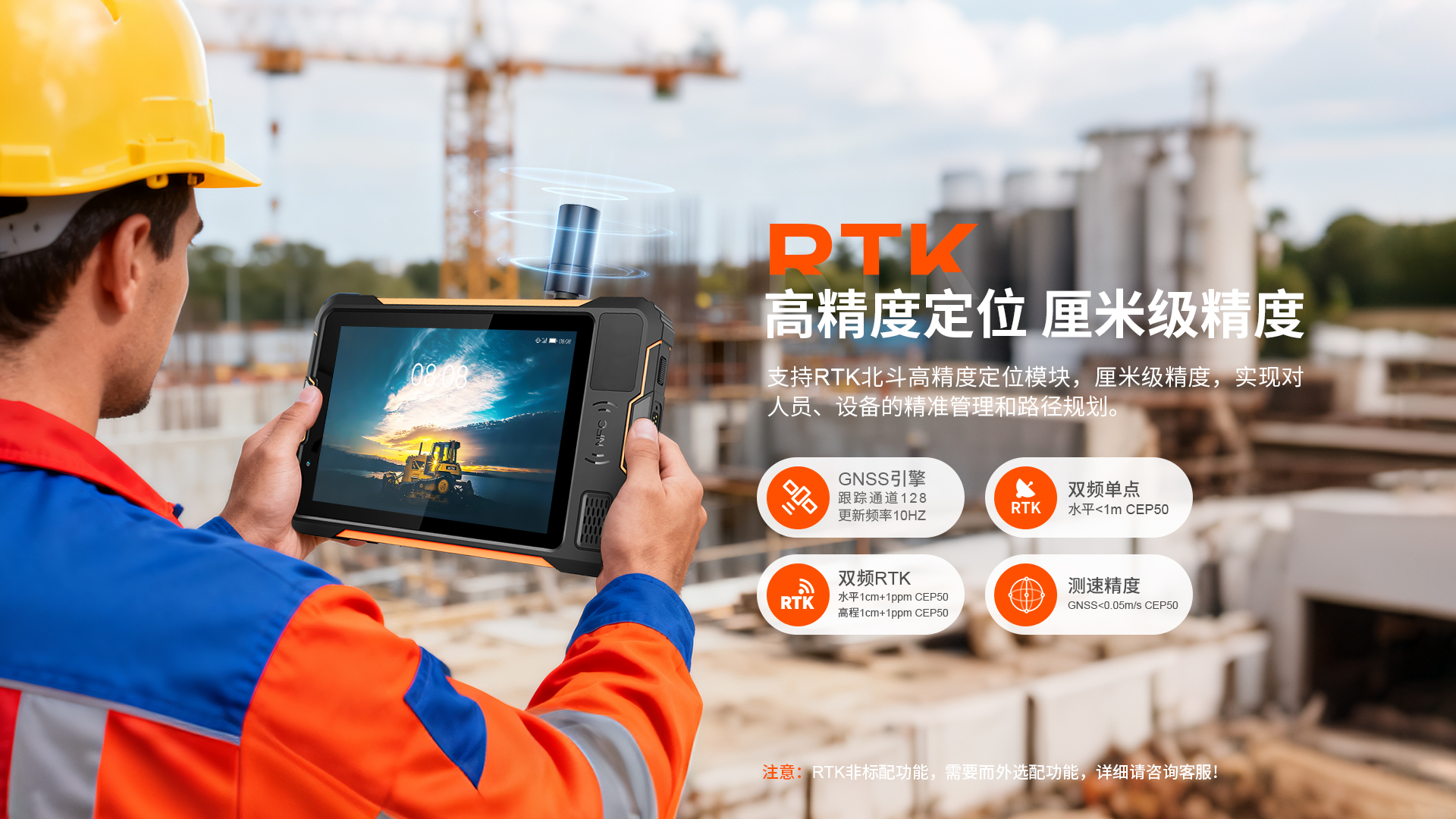 数据采集多模融合通讯智能终端 | 5G全网通 | 双卡双待 | Android 12系统 | 屏幕英寸 8英寸 FHD 1200*1920 | MT6877(天玑900) 2.4GHz 八核 | 机身内存 8GB RAM+256GB ROM | 聚合物锂离子电池8000mAh 超长待机 | 前置800万 后置4800万 | IP68防水|防震|防尘认证 | NFC | OTG功能 | DMR窄带对讲、POC公网对讲、PDT集群对讲、单北斗、2D扫描头、RTK高精度定位、天通卫星电话、北斗短报文(多功能可选配)
