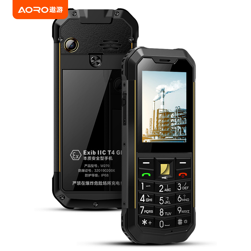 AORO遨游 W270 工业级智能防爆手持终端 | Exib IIC T4 Gb 认证 | IP-68防水|防震|防尘|认证 | 全网通 电信|联通|移动2G | 采用专业的防爆材料+双电路保护设计 | 经过权威的国家防爆认证机构认证,可广泛应用于:石油天然气行 业、废弃物管理行业、采矿行业(井下除外)、煤炭行业、化工/制药厂行业、公安消防等行业;防爆证号:320190209X